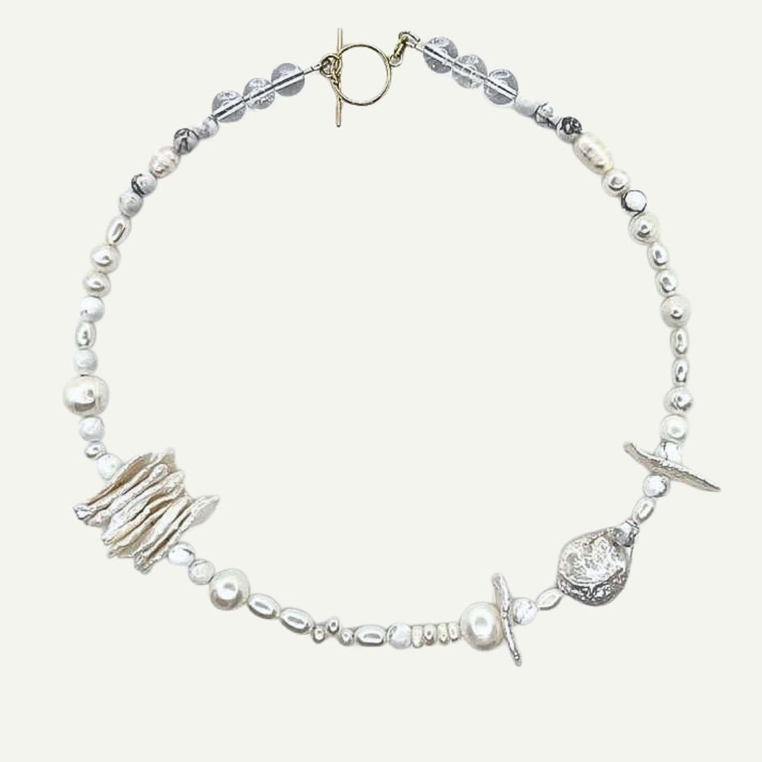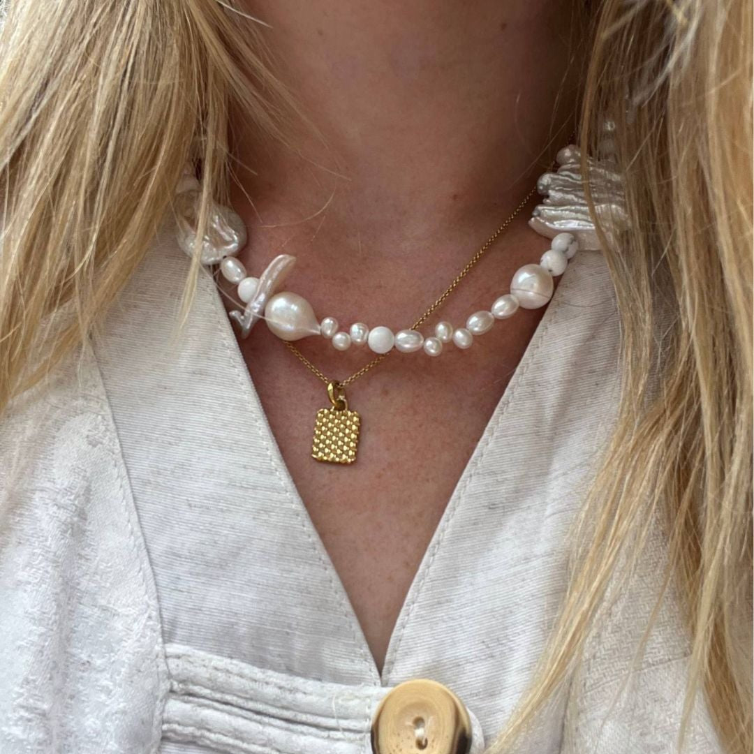 A Matari favourite. The Artemis; an eye-catching multi-shape Keshi pearl, baroque pearl and freshwater pearl necklace with a unique and timeless feel. As each pearl is unique, every necklace is different and yours. A classic and contemporary wardrobe staple, the Artemis can be worn dressed up or down, elevating your outfit from daytime to date night.