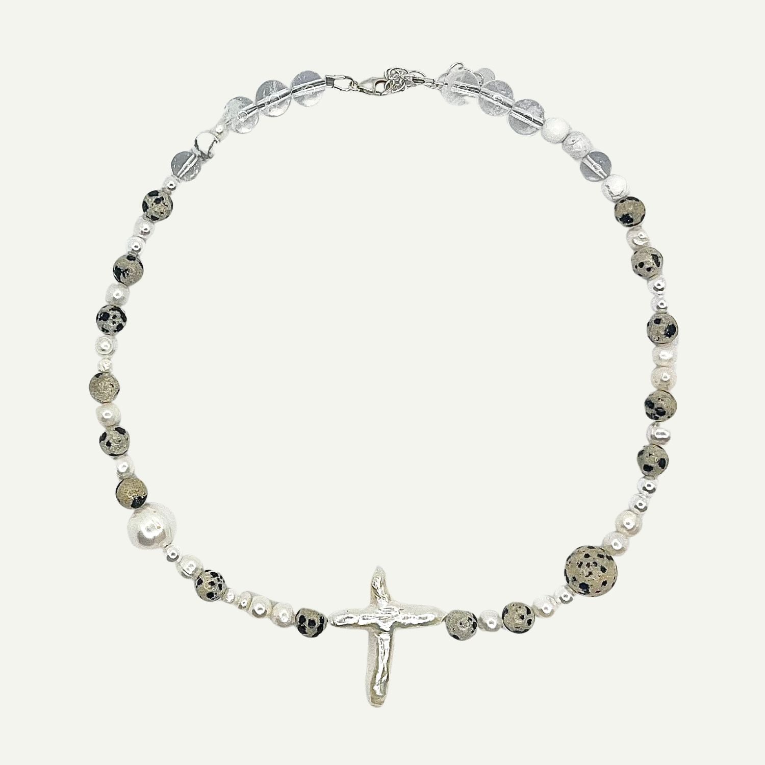 Cross Pearl, Freshwater Pearl, River Pearl, Dalmatian Jasper, Clear Quartz